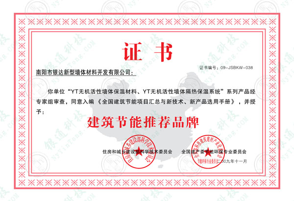 建筑節(jié)能推薦品牌國(guó)家證書(shū)