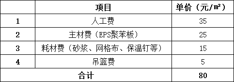 2021年某項(xiàng)目EPS外墻施工報(bào)價(jià)表
