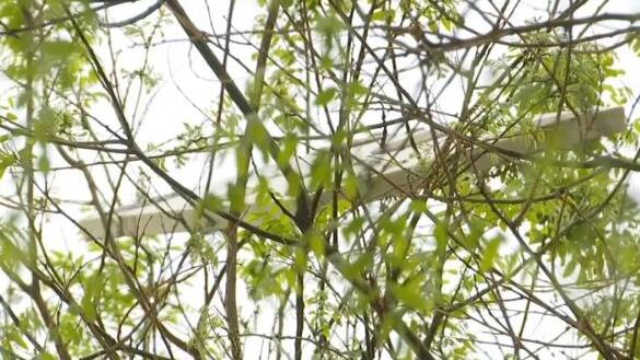 在旁邊的樹上,也掛著一片從樓頂掉落的保溫層碎片,外墻上還粘連著即將脫落的保溫層,如果再次發(fā)生脫落事故,將對居民出行構成危險。