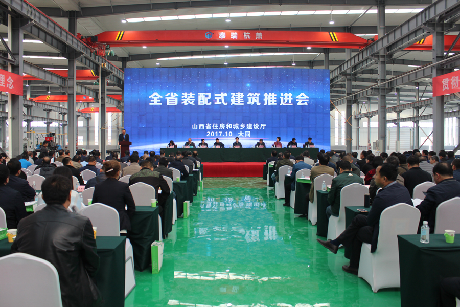 參會(huì)人員現(xiàn)場觀摩了大同泰瑞裝配式建筑示范項(xiàng)目和產(chǎn)業(yè)基地建設(shè)情況,之后在裝配式建筑生產(chǎn)線車間現(xiàn)場召開了推進(jìn)會(huì)。會(huì)議通報(bào)了省住房城鄉(xiāng)建設(shè)廳出臺(tái)的《裝配式建筑行動(dòng)方案》,太原、大同兩市住房城鄉(xiāng)建設(shè)主管部門和山西建投、大同泰瑞匯報(bào)了工作推進(jìn)情況。