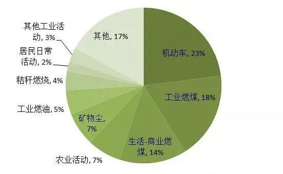 分析顯示,北京細(xì)顆粒物PM2.5 中大多是直徑小于1微米的超細(xì)顆粒物PM1,它的來源非常復(fù)雜。其中來自工業(yè)燃煤和生活燃煤的排放各貢獻(xiàn)約18%和14%、機(jī)動車貢獻(xiàn)23%、居民日常生活及其他活動占了約19%,剩下的是其他人類活動和自然界產(chǎn)生的。
