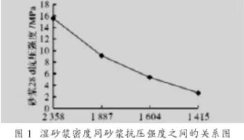 用濕砂漿密度表示建筑砂漿中的空氣含量,用灰砂質量比表示砂漿中的水泥含量,濕砂漿密度同砂漿抗壓強度之間的關系圖如圖1所示。