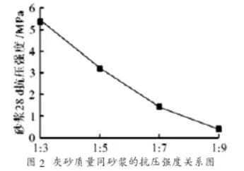 灰砂質量同砂漿的抗壓強度之間的關系如圖2所示。
