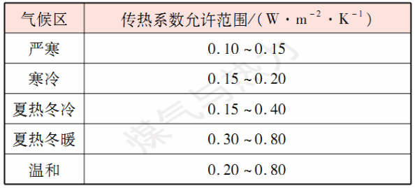 不同氣候區(qū)居住建筑外墻傳熱系數(shù)允許范圍: