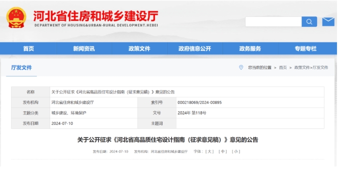 7月10日,河北省住建廳發(fā)布了《河北省高品質(zhì)住宅設(shè)計指南(征求意見稿)》。